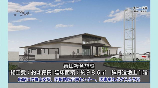 施設には、青山支所、阿保地区市民センター、図書室などが入る予定です。