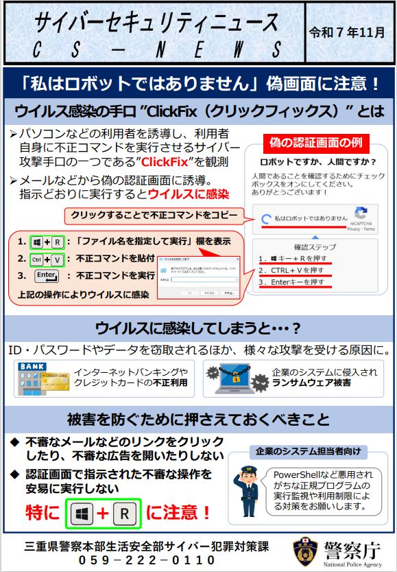 三重県警察本部サイバー犯罪対策課様よりサイバーセキュリティニュース11月号が公開されましたので